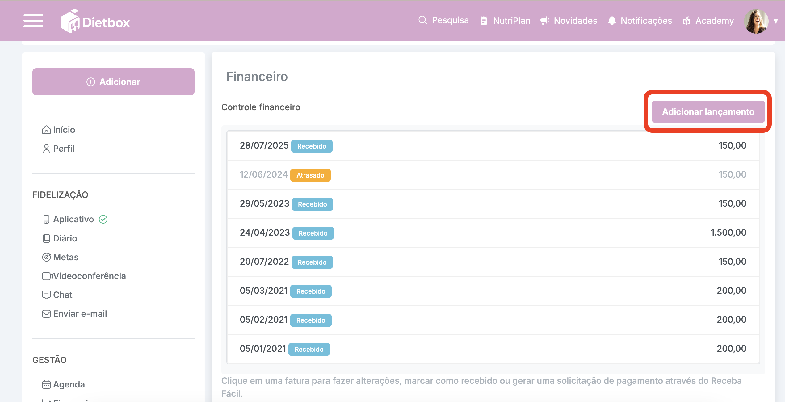 Adicionar lançamento: