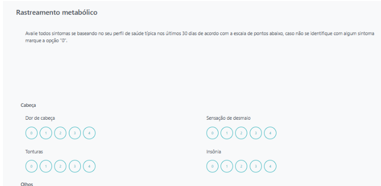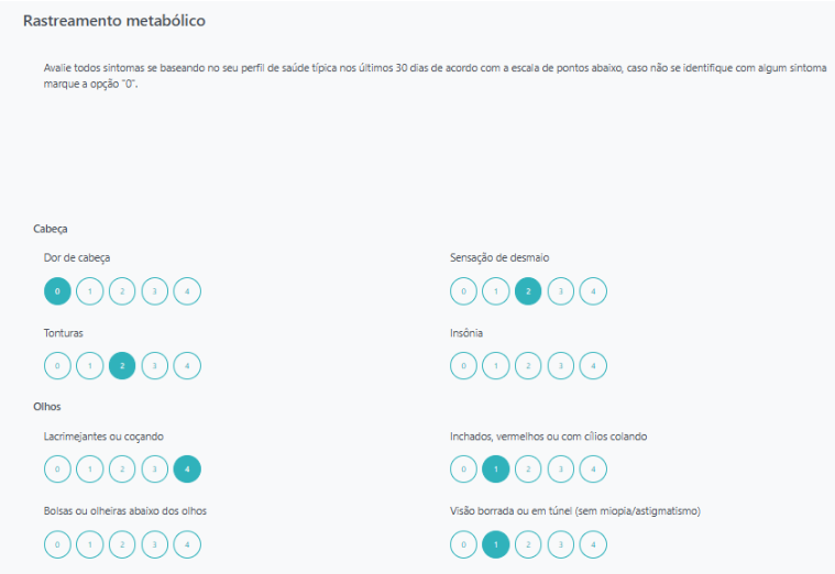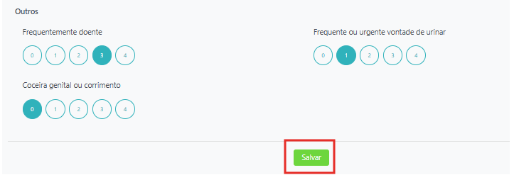 O paciente precisa responder todos os itens, mesmo que ele não tenha o sintoma, neste caso deve marcar '0'. Mas obrigatoriamente precisa responder de 0 a 4 em todos os sintomas, do contrário o questionário não será salvo.